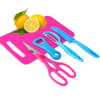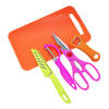 This kitchen knife set of 5 piece contains scissor, bottle cap opener, peeler, chopping board and knife. It is a diverse multi purpose knife set which is built with multiple functional pieces; includes Kitchen Scissor / Tin Opener combo. It is a High Grade Stainless Steel Utility Knive with additional Non Stick Coating Chopping Blocks for effortless cleaning. The specially designed handle provides a comfortable and ergonomic grip for complete control. Easy to Clean: Use water and soap. Will not tarnish, stain, or discolor. Note: The color of the tools inside the pack may vary from the picture.