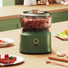 Make your cooking process easy with this all-in-one electric chopper. Made from high-quality materials, this chopper is lightweight, portable, and operates from USB charging. It has a transparent jar, button opening, and metal handle. You can disassemble the whole machine for easy cleaning. The chopper comes with two blades, a stainless steel blade and whipped cream blades. The chopper can be used for crushing garlic, ginger, fresh chilli, peanuts, ground meat, and preparing baby food. You can store it in your kitchen cabinets because of its convenient design.