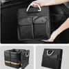 Organize those snacks and party drinks in this car boot organizer! This car trunk organizer is made of premium oxford fabric, which is not only durable but also waterproof &dust proof. It has a build in 2.5mm thick support plate and soft foam cotton ensures good stability and high in anti impact performance. It is equipped with a durable metal handle making it stronger and easier to move even when it is fully loaded. There are other four open mesh pockets and closable Velcro lid for easy access, making it very practical. It is foldable and can be stored in minimum space when not in use. It can