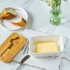 A butter box so cute, you wouldn't mind the calories!. Made from high quality and premium materials, this butter box is food safe and it also brings a natural style to your kitchen. The handle of the knife is made of ceramic, which has an excellent feel, touch, and appearance. The knife is made of stainless steel and can be placed on the lid for easy disassembly and use. The lid has a groove that perfectly fits the knife, integrating the butter knife, and butter box. This butter box with a lid can be safely placed in the refrigerator. You can also use the box in the microwave without the woode