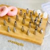Baking made even more fun with this cake decorating set! Adorn your cakes, cookies, cupcakes, and more with this long lasting baking set. Never fail at decorating a cake with this set. This set not only makes baking easy but is your go to option for baking preps. They are really easy to clean and store. You can also use a cleaning brush to keep it clean and safe. The nozzles are dishwasher safe and the piping bag is reusable. It includes 2 piping nozzles plus 12 shapes of nozzles (2 each) and comes in a plastic box with compartments.