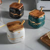 Adds a touch of clean, elegant style to your modern home. Made of high-quality ceramic, the non-toxic glaze keeps your spice fresh and prevents seasoning from dust or other dirty things. These spice jars come with wooden lids, spoons, and a tray for easy sorting and can hold as much as 200 gm. The marble finish of the jars gives them a unique look, making them perfect for any home setting. The lid included ensures that your coffee, tea, sugar, or other dry goods remain impeccably fresh, preserving their flavour and aroma.