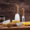 Elevate your dining experience with this gourmet cheese knife set. The set includes a heart knife, chisel knife, spreader knife, and pronged knife, each expertly designed for specific types of cheese. The heart knife's delicate edge is perfect for soft cheeses, while the chisel knife effortlessly tackles harder varieties. Experience easy spreading with the dedicated spreader knife, and skillfully slice through semi-hard cheeses with the pronged knife.
