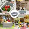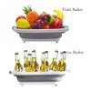 Save more kitchen space with our collapsible chopping board. This multifunctional chopping board can be expanded to store your fruits and veggies, wash them under the sink and the collapsible feature can be used to start chopping. Press the middle with one hand and hold the frame with another hand, open the dishpan and start to wash and drain with the buit in plug. The Special non slip stands could be placed on anywhere even smooth surface. It comes as a single piece.