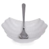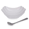 Elegant serving is the essence of all get-togethers. This set of bowls with spoons is perfect for every party to serve dip, sauces or chutneys to go with your snacks. It is a simple set that gives a modern and classy look to your dining collection. It is made of high-quality ceramic making it the perfect addition to your kitchen. This includes 6 bowls and 6 spoons.It is microwave-safe.