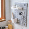Organize any space with this minimalistic pegboard. Crafted from high-quality materials, this peg board comes with an adjustable bowl and tray that you can place as per your needs. Designed for convenience, it keeps items within arm's reach in the kitchen for tools and spices, in the bathroom for shampoos and body scrubbers, or at your workspace for pens, headphones, keys and more. It features a stick-on adhesive, eliminating the need for drills, nails, screws, or glue, making mounting and unmounting a breeze.