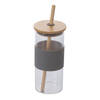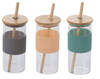 Glass Tumbler With Bamboo Straw And Lid - Assorted - Single Piece