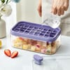 Calling over buddies for a fun night? Do not fall short in serving drinks on the rock! The ice cube tray is made of food-grade pp, 100% BPA Free, and durable for long use. It is a silicone tray that comes with an extraction button that allows it to de-mold immediately. It saves time from the struggle. How To use: 1. Pour the liquid into the ice tray and refrigerate for 6-7 hours. 2. Put the frozen ice tray upside down box. 3. Close the top cover, press the ice extraction button, and experience the ice out in a second. This product includes an ice box and 2 ice trays in assorted colors.