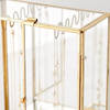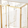 Put your precious trinkets on stunning display in this elegant glass jewelry organizer. It is tall with a two door design featuring mirrored panels accenting the metal frame that tops two pull out drawers at the base. It is like your own jewellery wardrobe that has scallop like hooks to hang all your chains. It is an extremely convenient addition to keep your space organized and chic. The design and feel of this box are extremely stylish and luxe. It adds aesthetics and vibe wherever placed. The upper space can be utilized to keep all your chains, pendants, necklace, chokers, anklets, etc. The