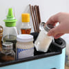 Your ultimate kitchen organizer rack is here!. This kitchen rack is perfect if you have fewer wall shelves and don't wish to drill holes in your walls. This kitchen spice organizing rack is perfect for renters, PGs, hostelers, people staying alone, office pantries, and Airbnbs. Our kitchen organizer features 6 spice rack compartments with handle that makes it easy to pull the containers. These spice containers are transparent so you can see and spot your container. This kitchen organizing rack features 2 sections for knives and cutlery, and a top shelf to store your sauces. Organizing couldn't