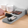 Safeguard yourself from unnecessary cuts and damage with this knife organizer. Crafted from high-quality materials, this 2-tier knife organizer is the perfect solution, providing safe storage and easy access to a range of kitchen knives. It features two levels for different blade lengths and can hold up to nine knives in a neat, compact space. The organizer has a non-slip base, keeping it in place, and is suitable for drawers with a minimum height of three inches.