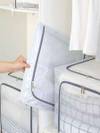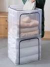 Organize all your stuff easily and neatly with this foldable organizer! This storage box features two steel stands that make it easier to make the box stand upright. It is transparent panels for a see through feature, and two handles to carry easily from one room to another. This organizer can be stacked one upon another inside the wardrobe or on shelves. It has an opening on the front secured with a zipper that allows you to take out the necessary things easily and without hassle. This keeps the things organized yet accessible. It folds into small pack while not in use saving your storage spa