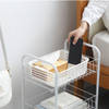 No more cluttered rooms! Reorganize any corner with this multipurpose rack organizer!This tiered grocery trolley adds heaps of space and fits neatly into unused nooks and crannies. Capable of slipping into the narrowest gaps, this smart rack has a multitude of uses, without taking up much space.It can also be used for arranging books and paperwork that would complement the look of any home or office.It can be used in your kid's room for arranging stationery supplies, toys, or clothes or in the kitchen to keep spice bottles, canned food, storage boxes, etc.It comes as a single piece.