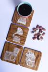 Reversible Coasters - Mandala Teak Wood - Set Of 4 - Retro