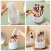 Elevate your makeup routine using this 360-rotating makeup brush organizer. This storage organizer spins smoothly and steadily, making it easy to access your brushes without wasting any time during your daily makeup routine. Crafted from durable plastic, it offers multiple compartments to neatly store and display your brushes, keeping them organized and within reach. It has a transparent dome cover that effectively prevents bacteria or germs, water droplets, and dust. This organizer can be used to store office and school stationeries. You can also gift it to your family and friends.