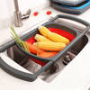 A culinary essential meticulously created to enhance convenience. Crafted from premium materials, this collapsible strainer is heat-resistant and has an extendable handle with a stripe design that ensures a sturdy, anti-slip grip. With a large 6-quart capacity, it's perfect for preparing substantial meals. Foldable and space-saving, it collapses to under two inches, making storage a breeze. This durable and healthy silicone tray is BPA-free and versatile, fitting most sink shapes. It effortlessly drains pasta, veggies, fruits, and more, whether for camping or daily use.