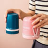 Do you struggle to carry liquids or gravies in tiffin? Not any more!. This soup cup is designed with stainless steel inner cup and pastel shades outer covers that gives it the cute and refreshing vibes. This cup comes with a dissembled spoon on the top which can be assembled as a full size spoon just by joining the two pieces. It is light weight, stackable, food safe and leak proof that makes it convenient and travel friendly. You can carry it anywhere and never be worried about any spills or leaks. It keeps hot food warm and chilled food cool for around 4 hours. It dishwasher, freezer and mic