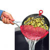 This Snap on Strainer very comfortably Fits to any Size Pot, Pan & Bowls, etc. This strainer is perfect for straining pastas, grease from meats and draining juice from fruits and veggies. Pull Ring at the end of Silcone and Fix to Opposite Rim of Pot. This strainer is diswasher safe (top part). It is made from food grade plastic and rubber. It comes as a single piece.