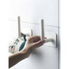 Organize and make your life easy and convenient with this multipurpose handle. It can be used in the bathroom and kitchen. Stick two of these at equidistant and create a DIY shelf to hang your tray or chopping board. It can also be used as a handle for your doors. It is made up of high quality plastic and comes with an adhesive suction sticker at the back to eliminate unnecessary drilling. Please note: The adhesive suction is tile wall friendly and suitable for [painted walls. The adhesive at the back can be stuck only once on the wall. It comes as a single piece.