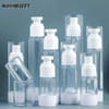 Portable toiletry travel bottles with vacuum pump for makeup, cosmetics, cream, gel, moisturizer, lotion, etc. It comes as a single piece.