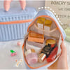 Effortlessly sort your essential items with this convenient toiletry bag. Crafted from high-quality materials, this makeup pouch can fit easily into your handbag. It is waterproof and has a smooth zipper to protect your items from falling out. The bag is compact yet spacious enough to pack miniature perfume, lotion, a toothbrush, sunscreen, and other essentials. The inner net pocket can hold your makeup brushes or more items. It has a handle, making it easy to carry and use.