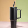 Vacuum Insulated Stainless Steel Tumbler With Straw And Handle - Black - Single Piece