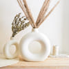 Boho in its look and made by the local craftsmen of India, this vase is a sight to behold. Use dry stems or grass to complete the look of the vase. Decorate your home with our premium Circular vase. Inspired by the Danish idea of hygge, this vase allows you to bring home a taste of Scandinavian decor. Just select a corner, place the vase and enjoy! These vases and anything sculptural like this appeals to the minimalist design; its a chance to bring a bit of craftsmanship into your home. It is made of ceramic. It is sold in a single piece.