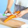 Upgrade your cooking game with the ultimate vegetable peeler. Made of high-quality materials, this carrot-shaped peeler has a ceramic blade. The peeler features an ultra-sharp, rust and corrosion-free double-edged ceramic blade that can retain its sharpness for a long time. The peeler has a sturdy handle that helps peel various vegetables and fruits. Its playful design makes cooking even more enjoyable.